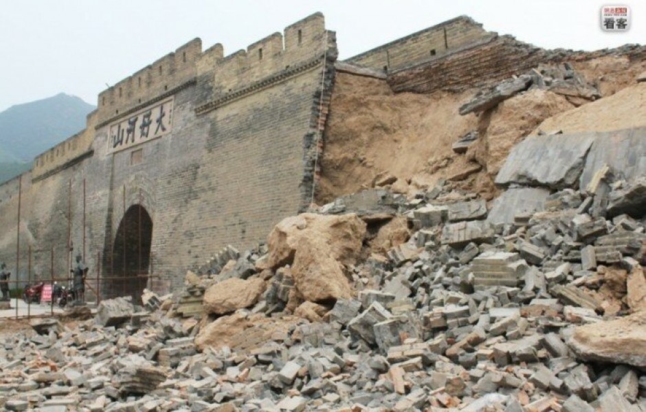 Великая Китайская стена (ВКС), когда дождь ее размыл, оказалась, к всеобщему удивлению, плохо слепленным новоделом... Она представляет собой лишь вал из глины высотой 4 м., обложенный одним-двумя слоями кирпича. Вал вполне могли создать трудармейцы при Мао Цзедуне. Внутри вала люди обнаружили стеклотару, ржавые пустые консервные банки и то, что вывозится на свалки. Незамысловатая кирпичная кладка создана в 90-е года прошлого века при "реставрации" ВКС.
