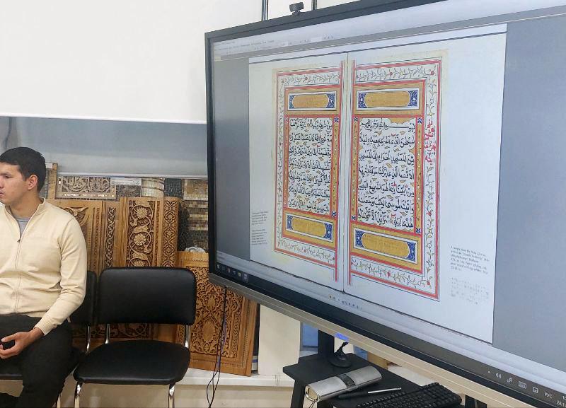 Сегодня прошло обсуждение и подбор текстов, проработка дизайна для ковров из натурального шёлка для в Коранного зала строящегося в Ташкенте центра исламской цивилизации.