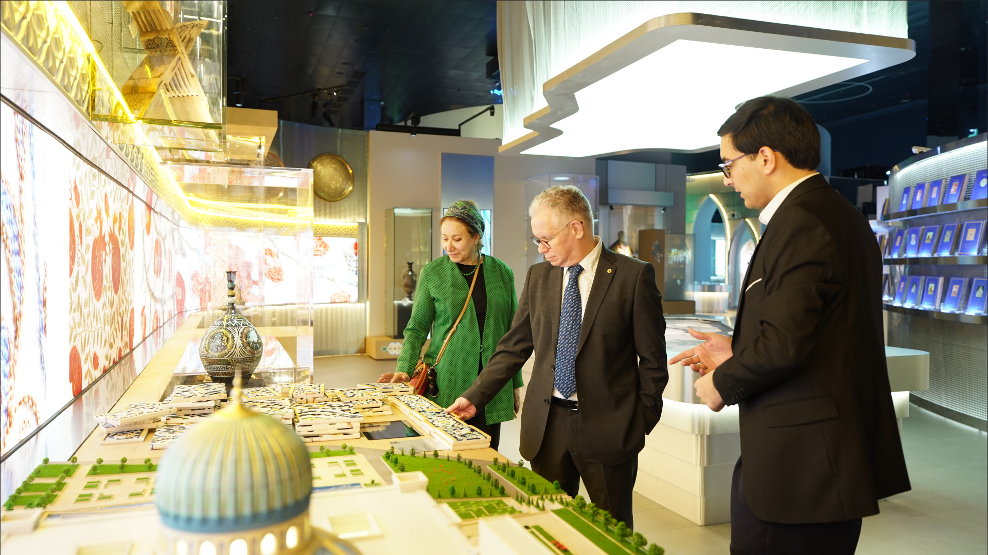 Umuman, markazda namoyish etilayotgan original tarixiy ashyolar va noyob eksponatlar mehmonlarda chuqur taassurot qoldirdi. Shuningdek, delegatsiya a’zolarini XV asrning birinchi yarmiga oid, ipakdan to‘qilgan va imomlar uchun mo‘ljallangan maxsus chopon juda qiziqtirdi.