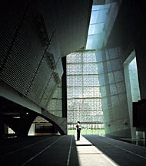 Далее, минуя внешний двор, верующие попадают в молельный зал, окруженный 20-метровыми арками, выполненными из гладкого бетона с V-образными пластичными вырезами и металлическими стяжками. Молельный зал открывается в четырехярусный атриум с покрытыми мрамором стенами, освещенными натуральным светом, попадающим через узкий потолочный люк. В центре расположен михраб – ниша, указывающая направление на Мекку, а справа помещается мимбар, откуда имам обращается к прихожанам.