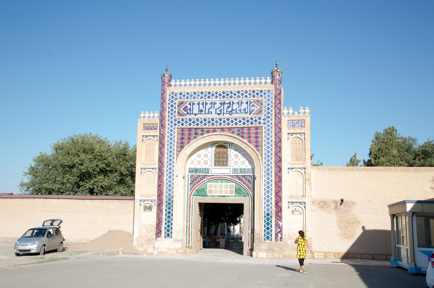 Главный вход во дворец декорирован скульптурами мраморных львов, высеченных бухарскими мастерами из газганского мрамора.