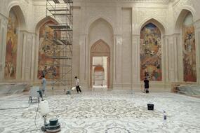 “Ўзбекистондаги Ислом Цивилизацияси маркази” объекти қурилишида асосий бинонинг 1-қаватида Муқаддас Қуръон зали фойесида пардозлаш ишлари якунланди, бу ерда тозалаш ишлари бажарилмоқда. Қу...