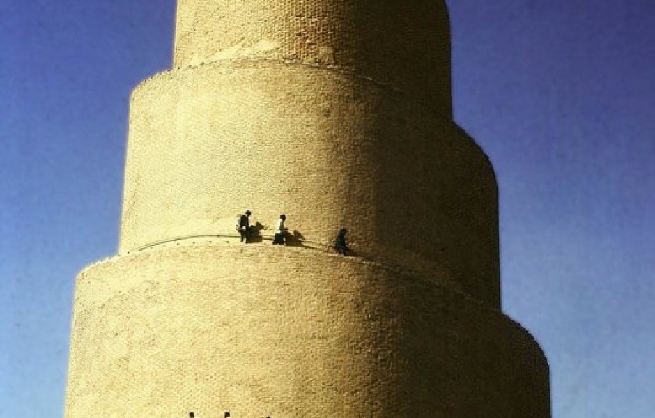 Минарет выглядит как архетипическая Вавилонская башня, но это уже исламское сооружение, часть комплекса Большой мечети. Построены они по приказу халифа аль-Мутаваккиля, внука Гаруна аль-Рашида, героя «1001 ночи».