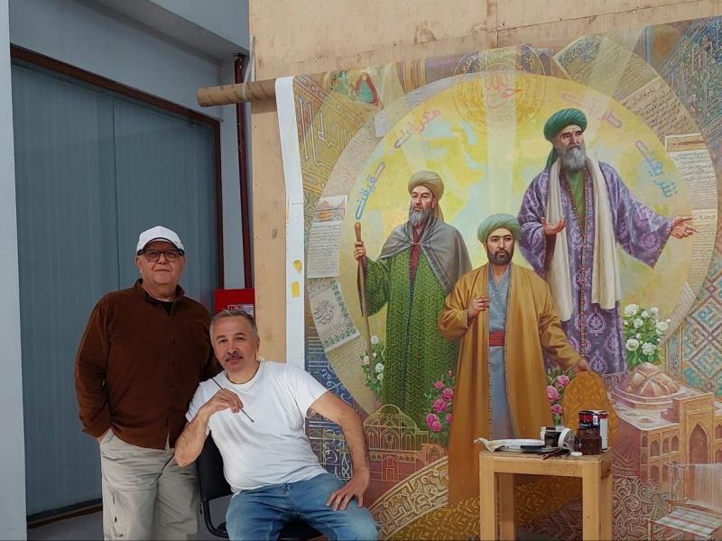 В Центре исламской цивилизации художники продолжают свою работу над картинами для арок в фойе.