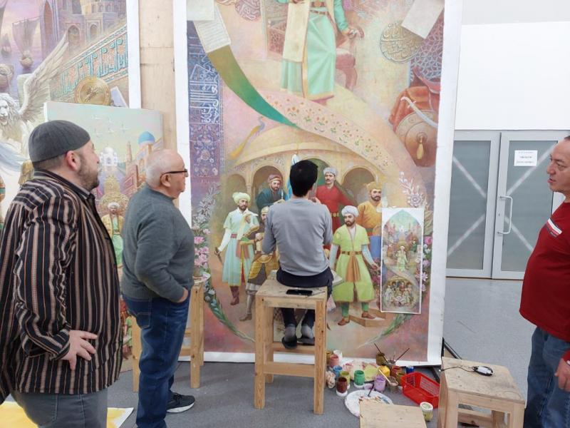 В художественной мастерской, совместно приглашенными специалистами продолжаются работы над картинами для оформления фойе строящегося в Ташкенте Центре Исламской Цивилизации