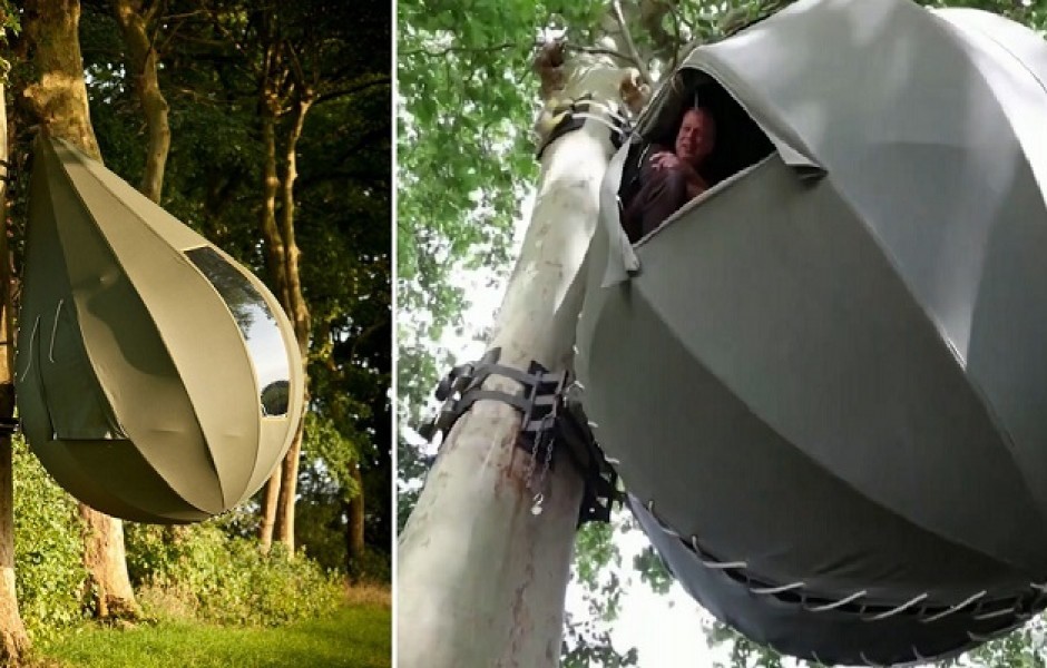 Появился экзотический вид палатки, где гости отдыхают, свисая с дерева