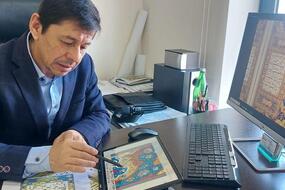 Дизайнер - миниатюрист Шухрат Заиров. Он со своим коллективом готовит узоры, которые в дальнейшем будут исполнены в коврах для Коранного зала строящегося в Ташкенте Центра ...