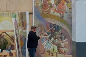 10/11/2023В мастерской продолжают активную работу и обсуждение образа Мангуберди художники, принимающие участие в оформлении строящегося в Ташкенте Центра Исламской цивилизации.