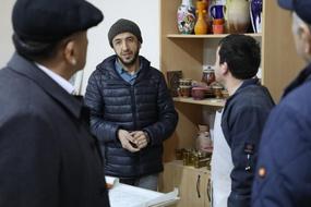 Директор дирекции, представитель Треста-12, посетили мастерские и ознакомились с ходом работ по производству керамической плитки и майолики для строящегося в Ташкенте Центра Исламской Цивилизации.