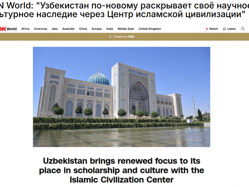 CNN World: "Узбекистан по-новому раскрывает своё научное и культурное наследие через Центр исламской цивилизации"