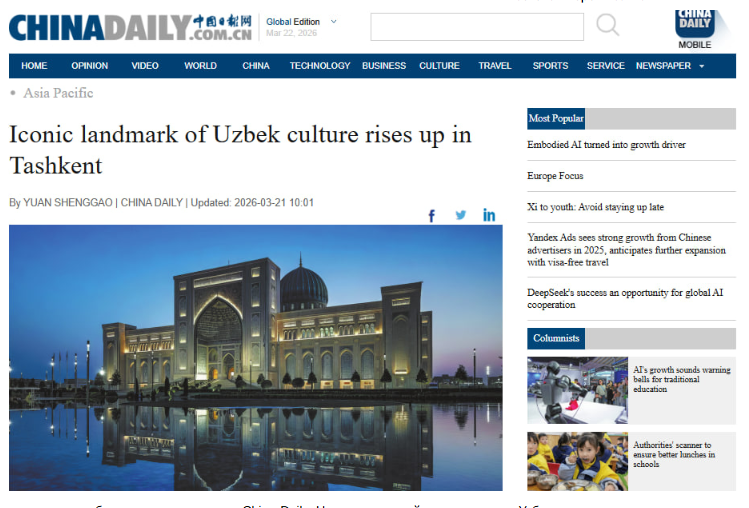 China Daily:"Символ узбекской культуры формируется в Ташкенте"
